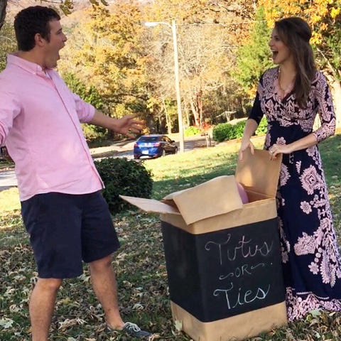 Both wearing our pink and navy to the gender reveal party! The theme was "Tutus or Ties- come find out the surprise!"